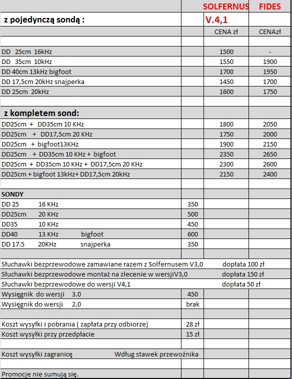 Prosimy o staranny wybór konfiguracji wykrywacza, gdyż nie przyjmujemy zwrotów.
